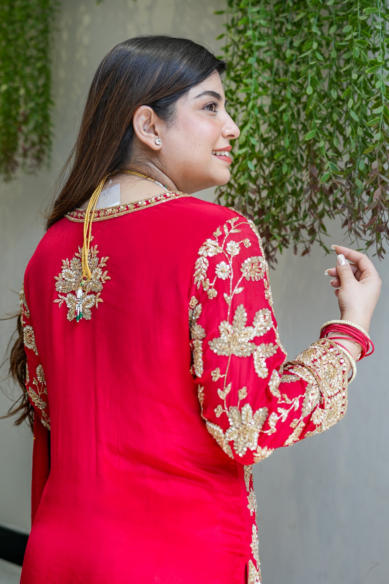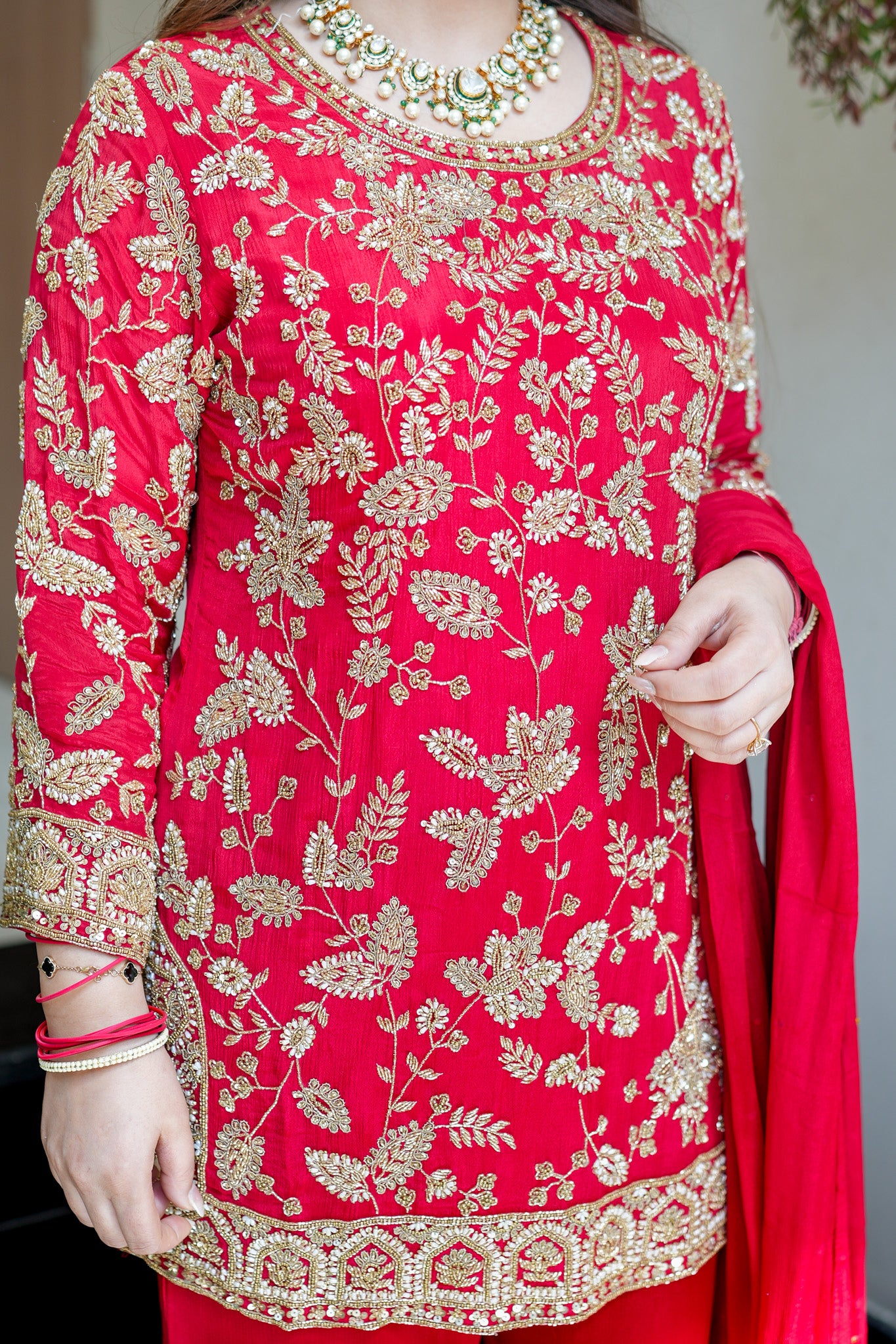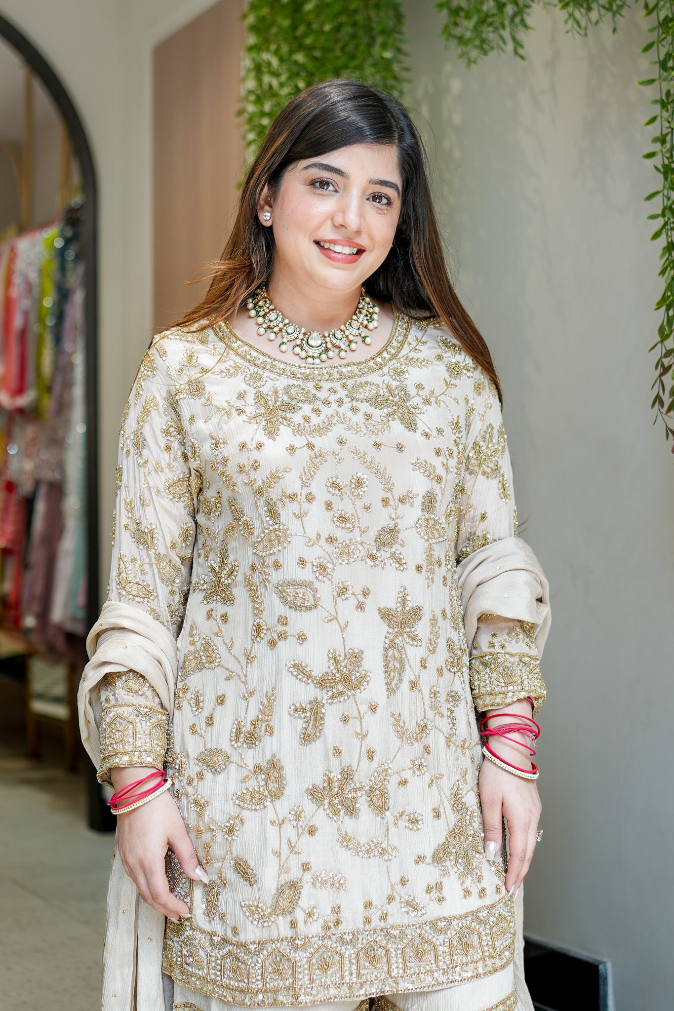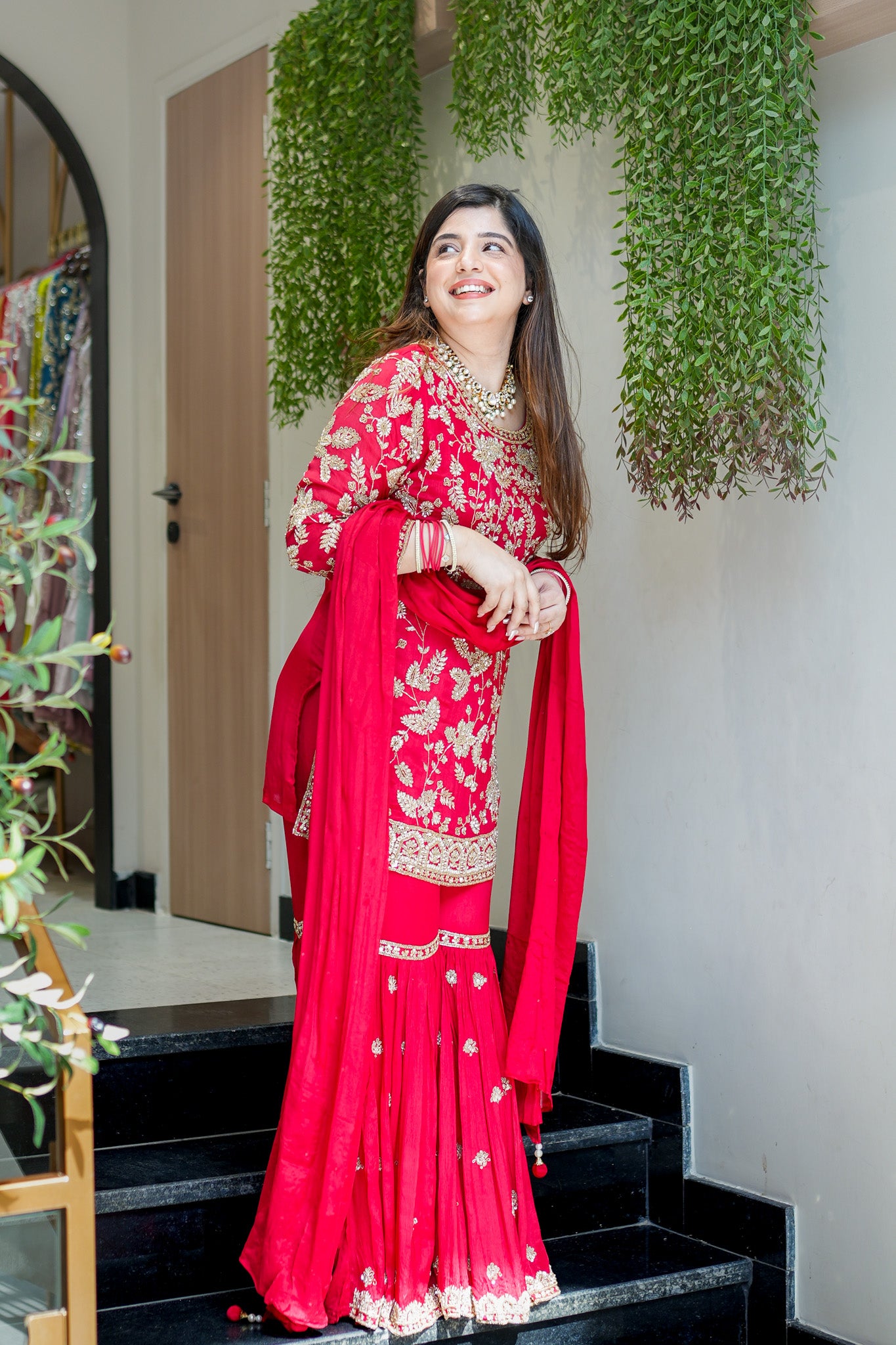 Fully Hand Embroidered Shararas, available in 3 beautiful colours.
