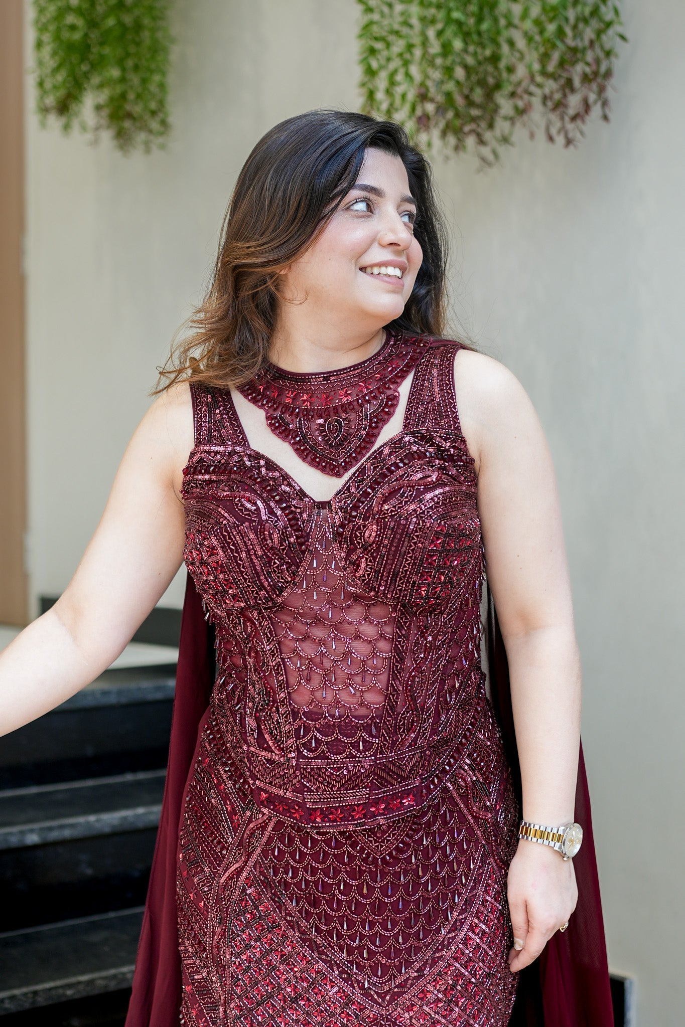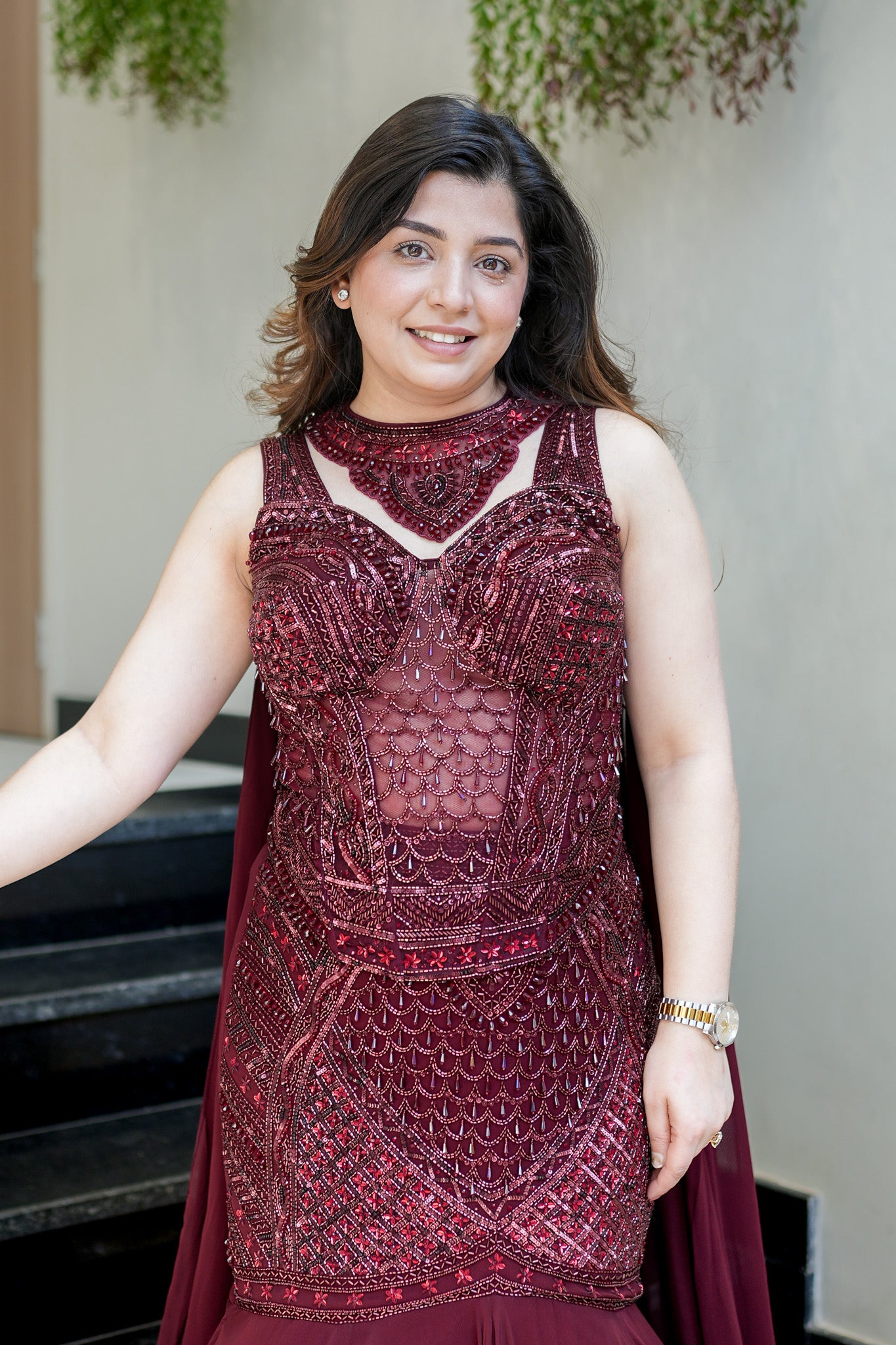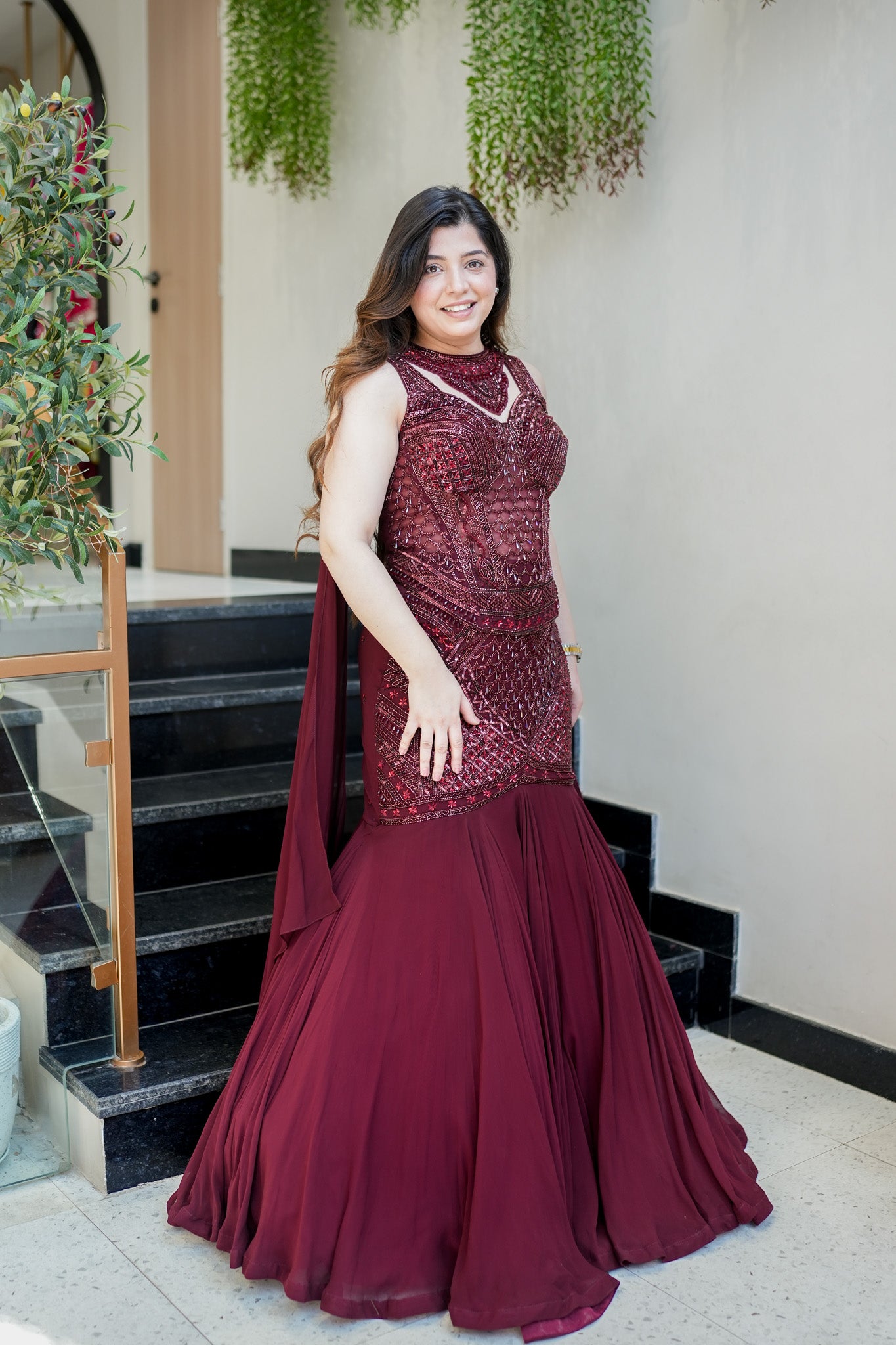 Fully Hand Embroidered Corset with Fish Cut Lehenga and Neckline Style Choker Dupatta, can be customised in any size.