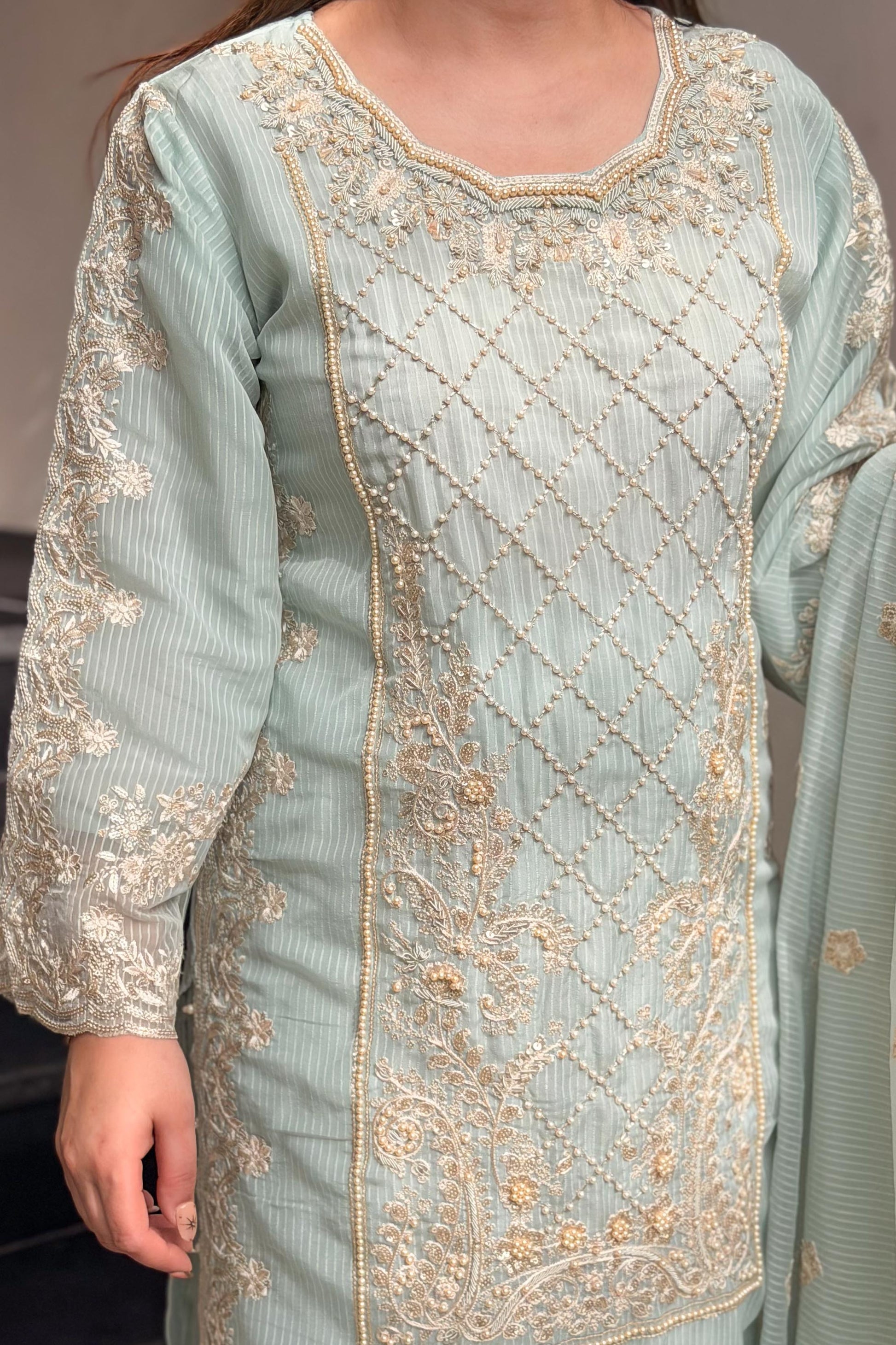 Zaakira Blue Embroidered Pakistani Suit Set