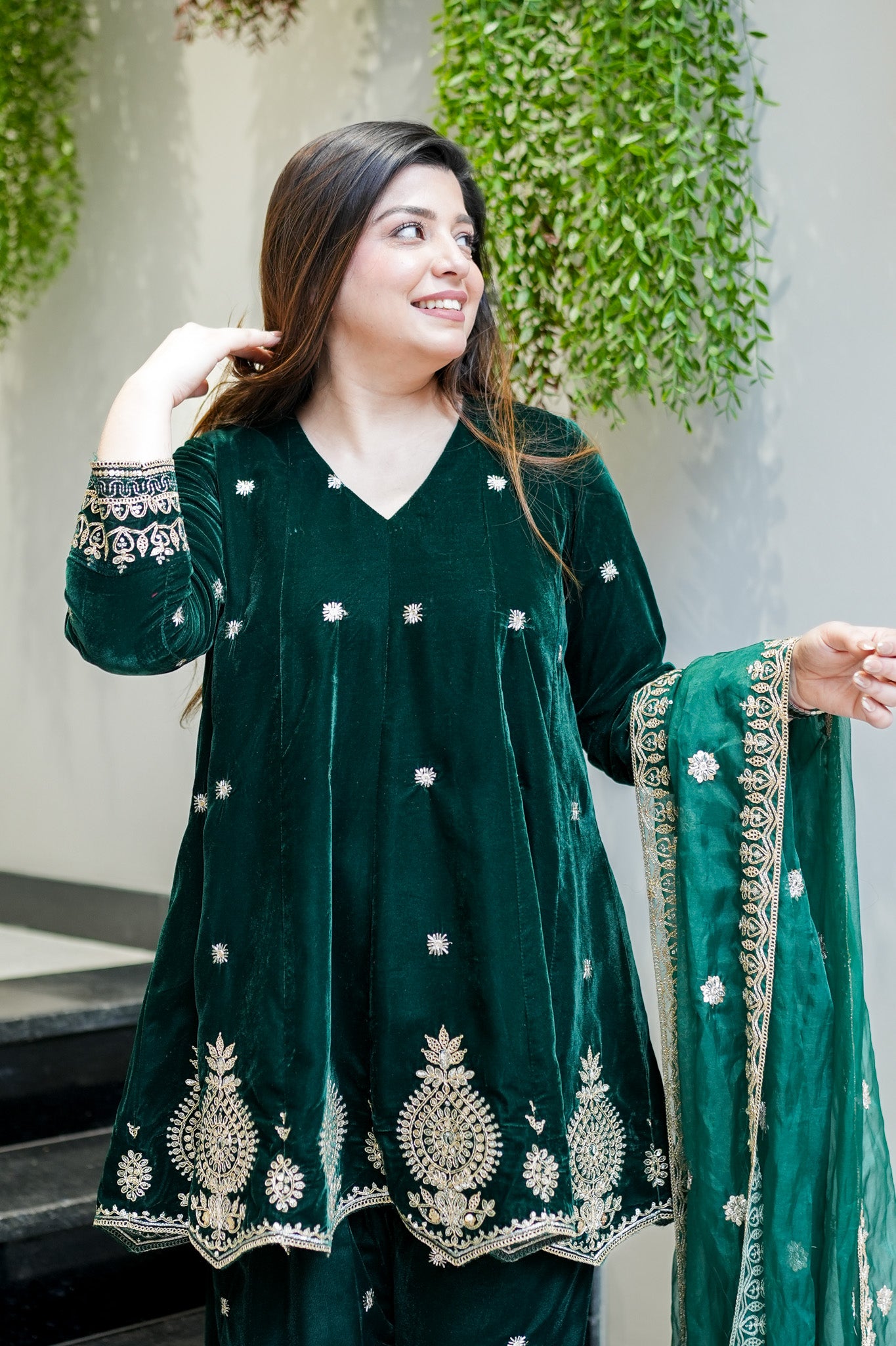 Zeenat Embroidered Velvet Short Anarkali Set